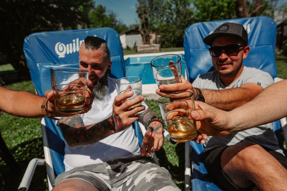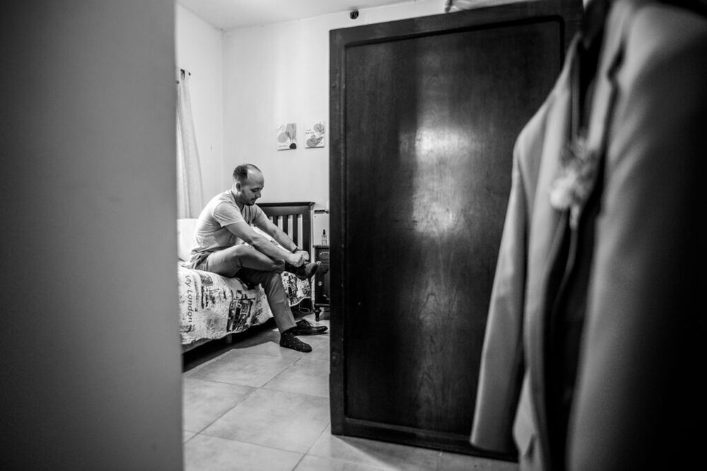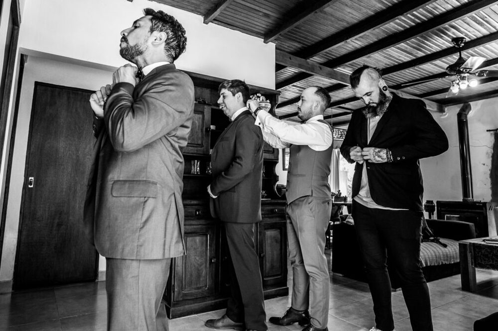Facu y Agus se prepararon de manera diferente para el gran día: mientras él compartía momentos de camaradería y brindis con sus amigos, Agus se emocionaba junto a su hermana, madre y amigas más cercanas.