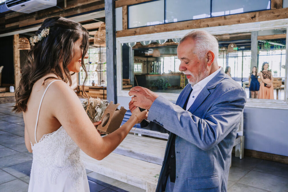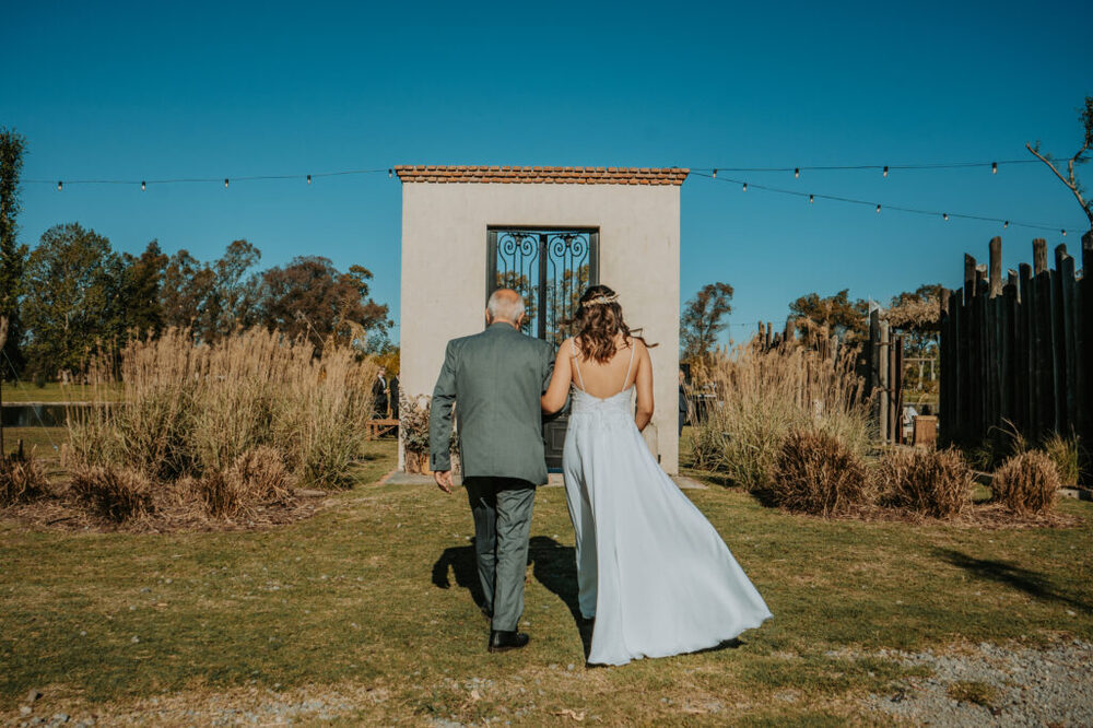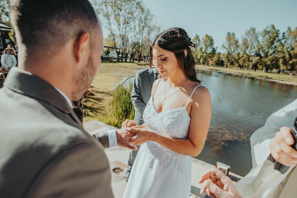 La ceremonia al atardecer junto a la laguna fue un momento de gran emotividad. Con el cielo teñido de tonos dorados, Agus y Facu intercambiaron votos de amor eterno en un entorno verdaderamente idílico.